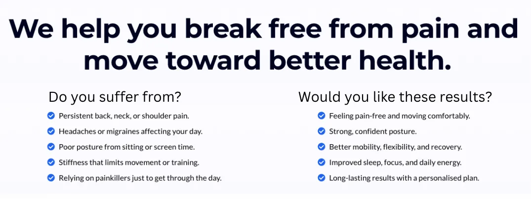 Chiropractors assess, diagnose, and treat issues involving the spine, joints, muscles, and nervous system. Their goal is to reduce pain, improve mobility, correct posture, and support long-term health through hands-on care and personalised treatment plans.